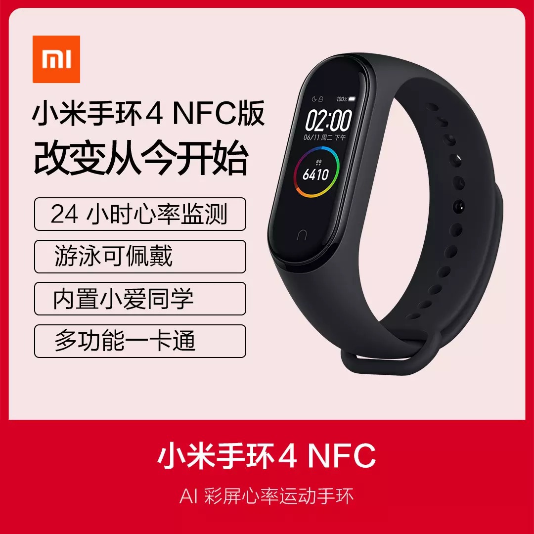 【小米 • 小米手环4 NFC版】可穿戴的人工智能 | 智能家居控制中心 | 内置小爱同学 | 伸手刷卡