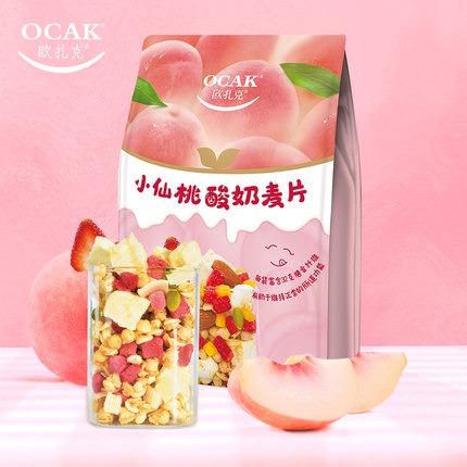 【欧扎克 • 小仙桃酸奶麦片】400g 唐嫣推荐 | 膳食纤维代餐饱腹 | 呵护肠道健康