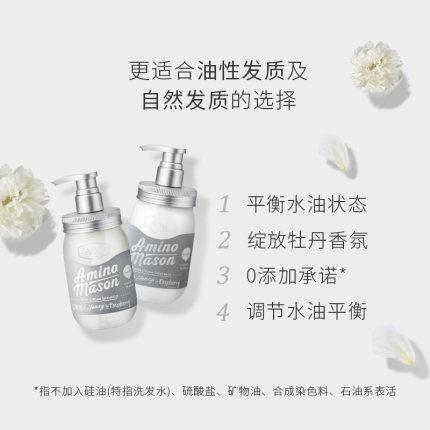 【Amino Mason • 氨基酸清爽控油洗发水护发素套装】450ml*2 香水级白牡丹 | 分子型氨基酸 | 定制瓶身 quantity